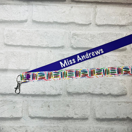 Multi Crayon Print Personalised Lanyard